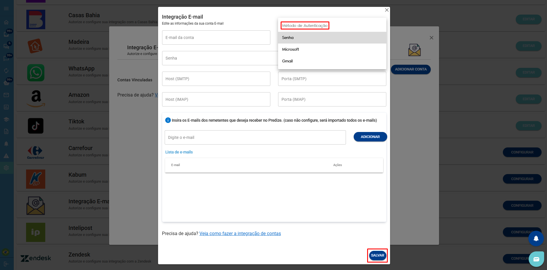 É necessário verificar com o responsável técnico da empresa ou com o provedor de e-mail. - Após preencher todos os campos, clique em "Salvar".