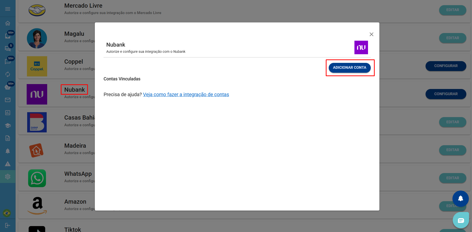 O Nubank é uma nova integração disponível no Predize. O processo de integração é simples e rápido, permitindo que, após a configuração, a conta já fique disponível para uso na plataforma.