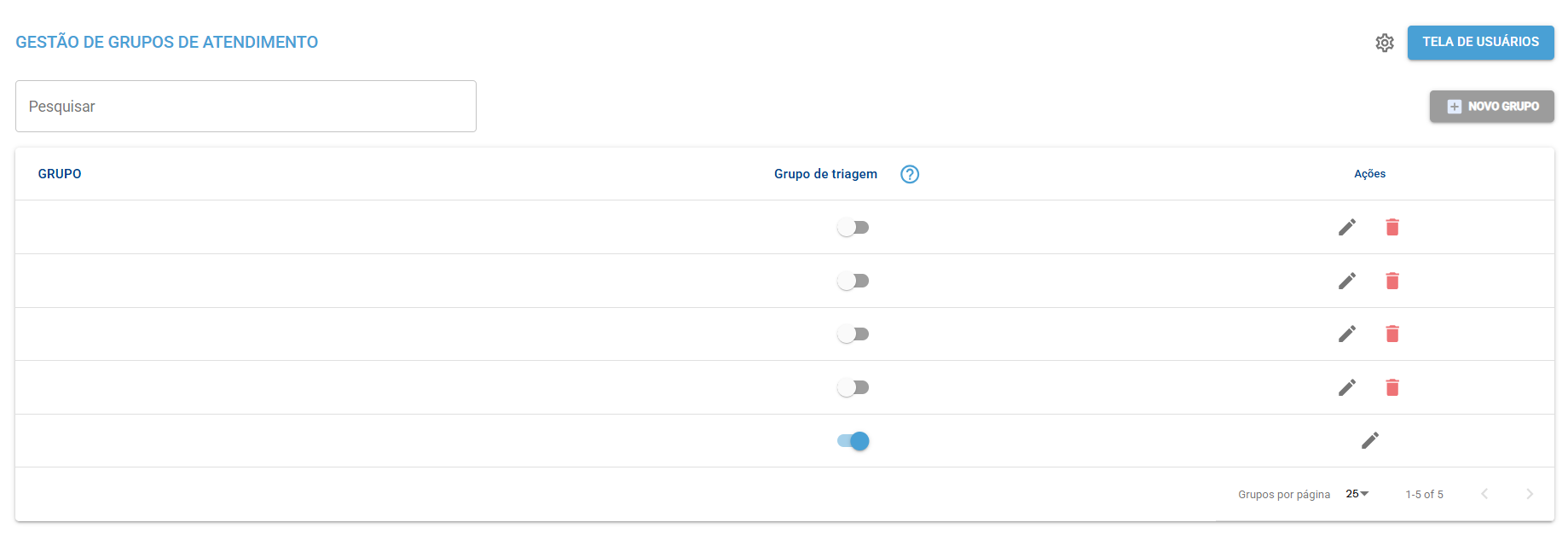Essa tela ficará posicionada logo abaixo da opção Grupos de Atendimento.