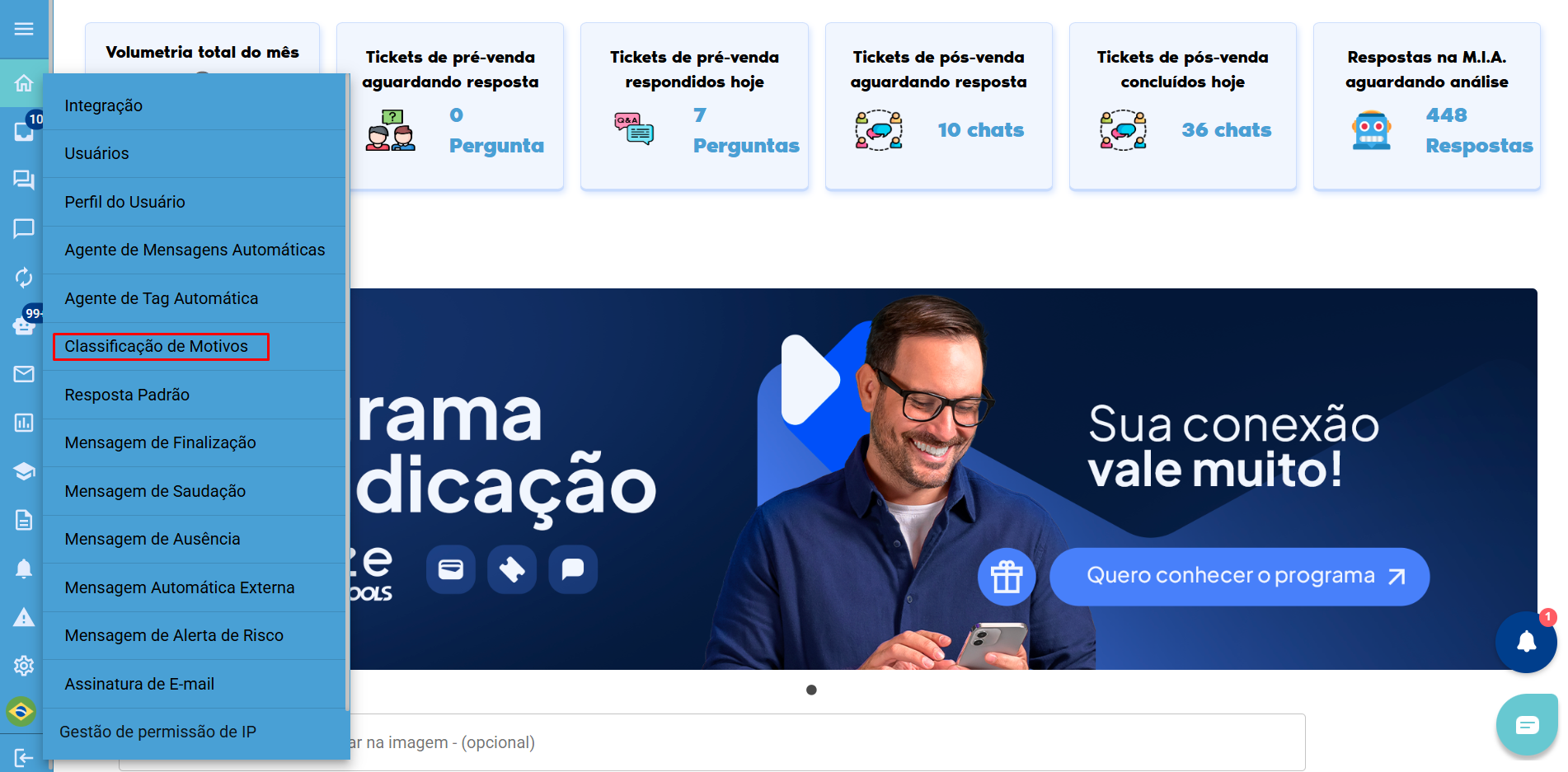 Os Motivos de Atendimento permitem classificar, de forma estruturada, o real motivo pelo qual o cliente entrou em contato.